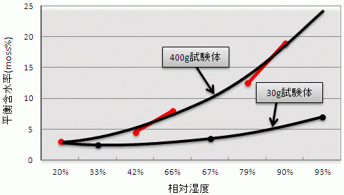 表面積を増やすことにより吸放湿能力が増強されることがわかる。 |
